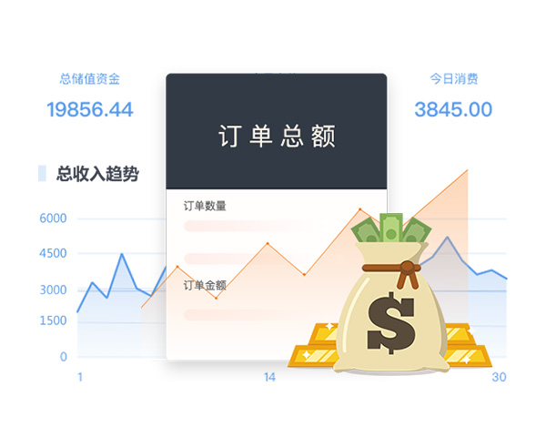 可直观查看普通及活动商品订单、交易总额、积分使用情况等